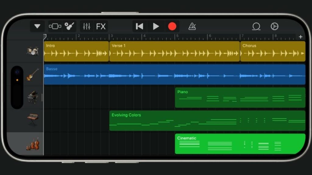 GarageBand est préinstallé sur tous les appareils Apple et c’est probablement l’application pour enregistrer sa voix et sa musique la plus puissante en gratuit. Multipiste complet, instruments virtuels, effets audio, et une interface intuitive qui en fait un vrai petit DAW de poche.